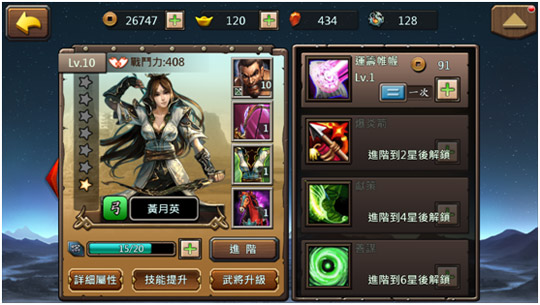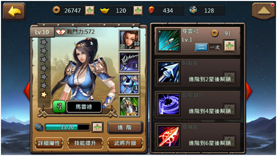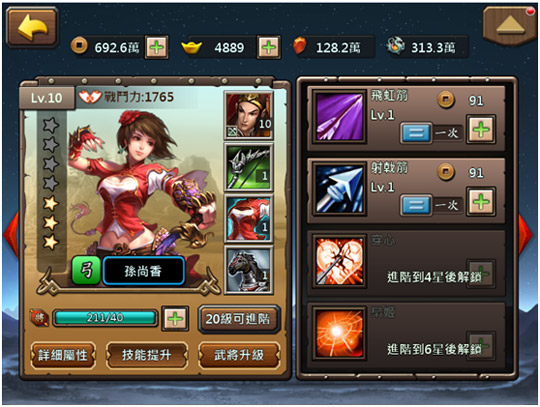 武將可以使用強化石和獸靈石來強化,強化石用來強化武將的武器、盔甲;獸靈石用來強化武將坐騎。