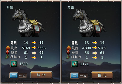1.武將總體氣血,武力,體力,怒氣,移動力跟武將的裝備,坐騎,屬性息息相關。
