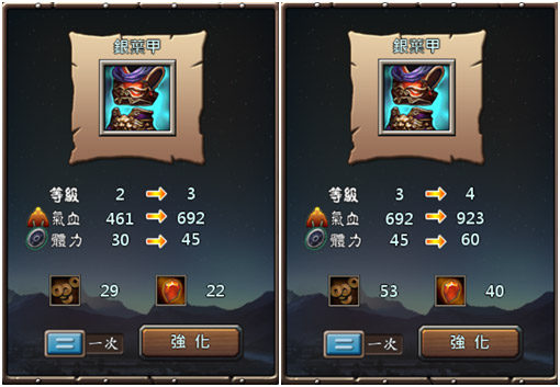 銀葉甲,強化,氣血增加231點,體力增加15點