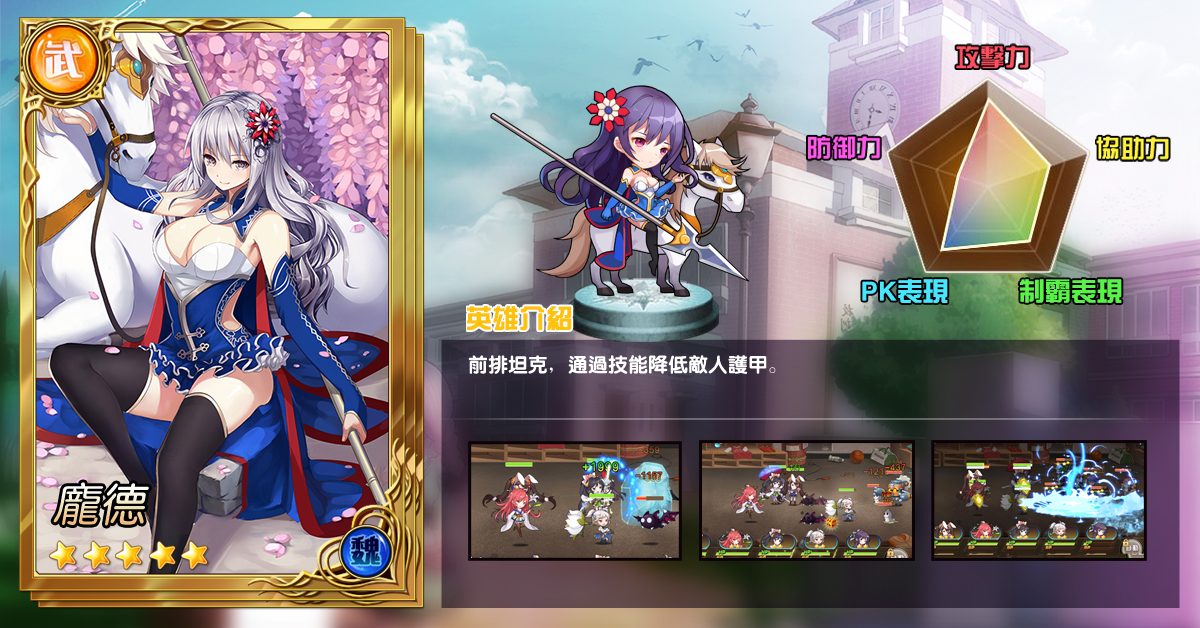 【三維成長】龐德的三維成長一般,以兩星為例,武力成長4.2,法術成長2.25,靈巧成長2.85,初始武力成長不錯,但後續成長略差。