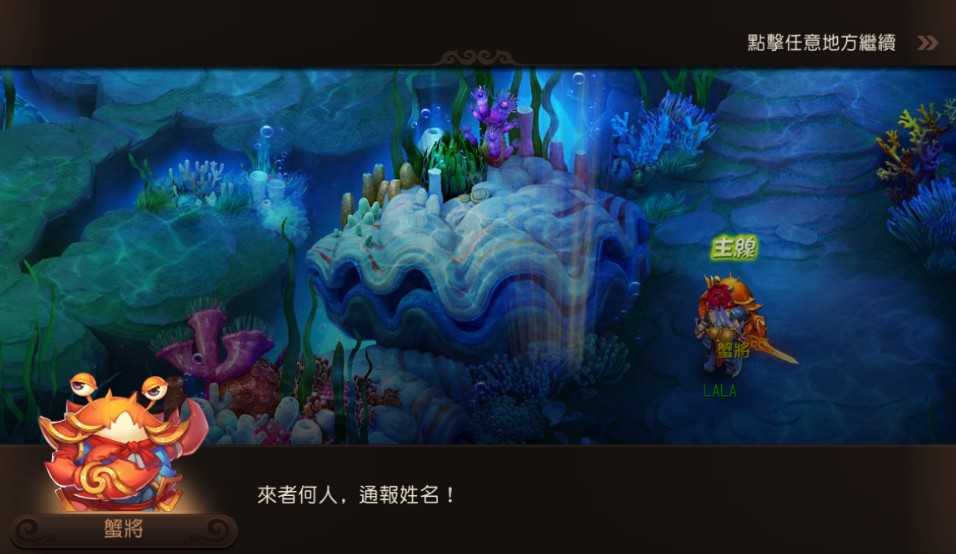 聽說龍宮裡有一種會眨眼的金色鯉魚,想來捉條當寵物……剛把來意說到這裡,蟹將就翻臉了。原來那尾金色鯉魚是龍王所化,怪不得蟹將這麼憤怒。當你說是來還定顏珠的,蟹將大喜過望。龍王聽到殷小姐之名,就知道是陳都領的家眷。你和陳光蕊見了面,告訴他殷溫嬌還在尋找他。
