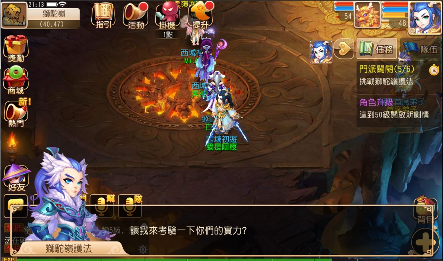 活動開始之後,玩家可以在長安城(座標 118,55)尋找門派闖關使者領取任務,領取任務後前往挑戰各大門派的護法,在活動持續時間內,玩家可以盡可能多的挑戰門派護法,在活動結束之後,將會統計闖關關數最多的隊伍,給予三界菁英的稱謂與不斐的排名獎勵。