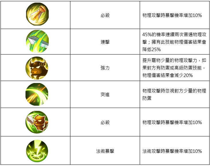 魔獸要訣包含絕大多數馴服寵物技能,還有普通、高級和主動之分。