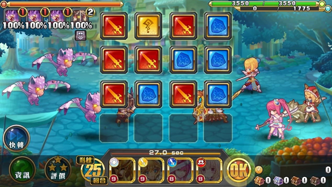 另外,這裡的BOSS關卡另一大難度便是15回合內要完全通關,這對於前面兩道小怪回合有傀儡騎士來說相對的有些難度。陣容上建議配置標準陣容,也就是四職各一(1坦1攻1靈1補),來應對所有狀況。