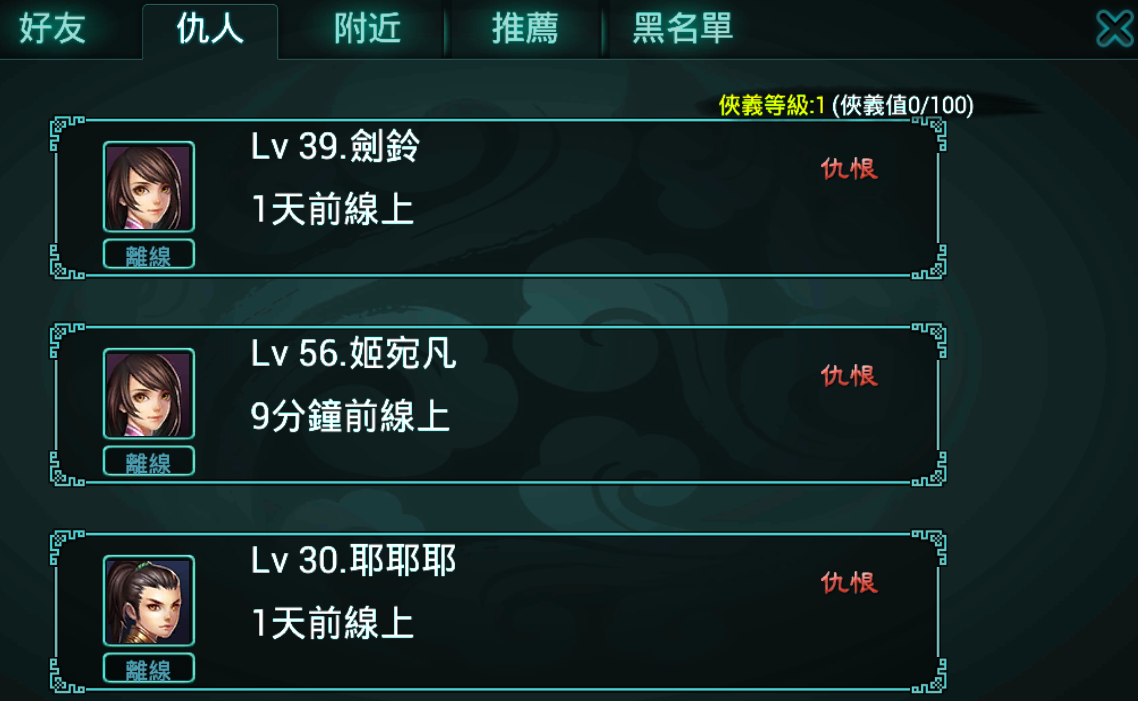 玩家可點擊社交按鈕來查看好友、仇人以及黑名單。