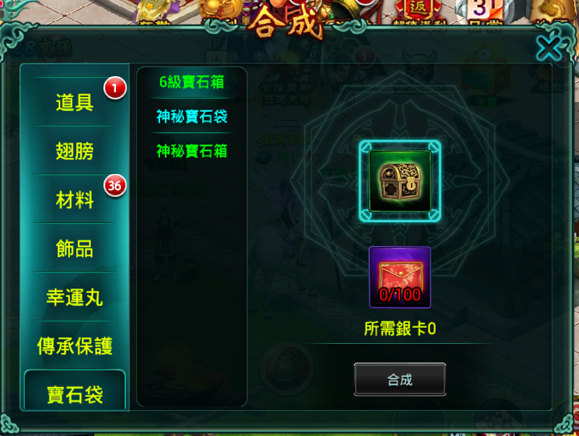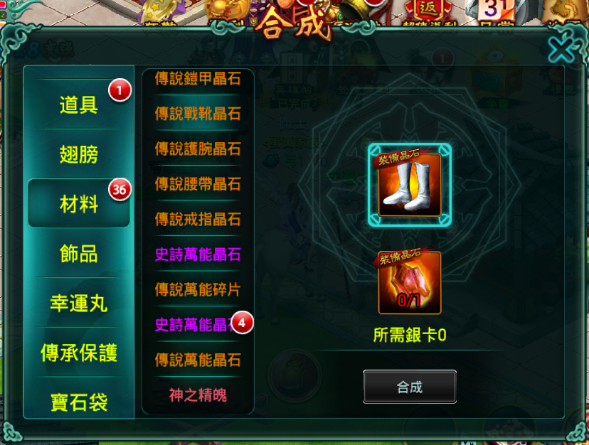 合成系統在遊戲中可以說是非常的重要,幾乎所有的碎片都可以合成相關的道具。例如高等級裝備、材料、寶石等等…