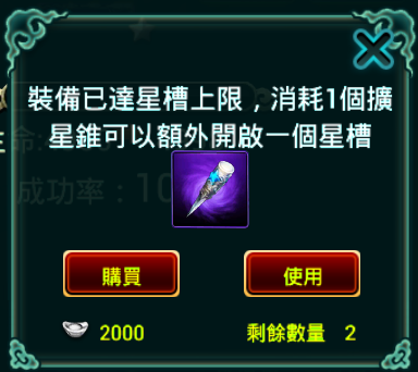 看到凝聚星魂的界面後,連續點擊5次凝聚星魂,即可點亮升星按鈕。 凝聚星魂需要消耗道具『星塵』,若裝備星槽已達上限,需要消耗擴星錐來額外開啟一個星槽;需注意越高等的裝備升星是有機率會失敗的哦!