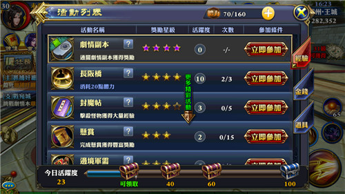 -懸賞:每天30次,完成後獎勵經驗和權杖(換取特殊稱號);