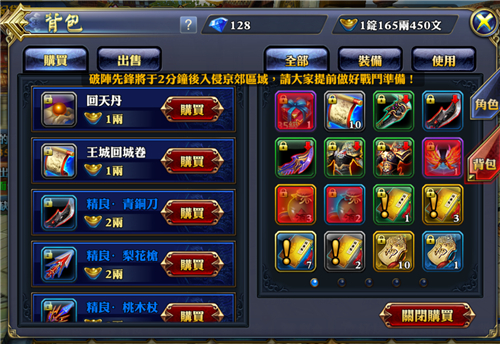 同時背包也有購買功能,少俠點擊購買按鈕就可以了,這裡的購買只需要花費銀兩。