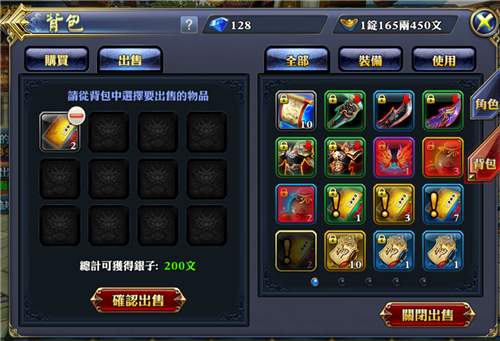 還有少俠角色背包不夠用的時候,但又不想花鑽擴充背包格子,小編教你一個好方法,可以將背包里一些低品質的物品出售出去,出售是可以獲得銀兩哦~~
