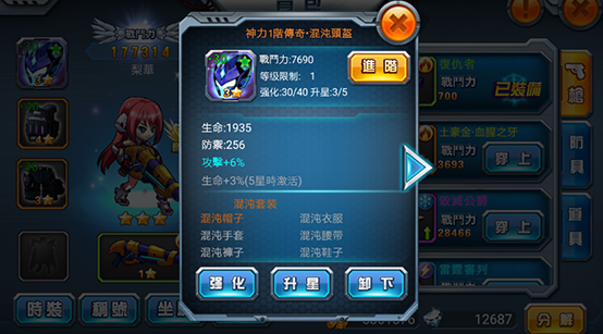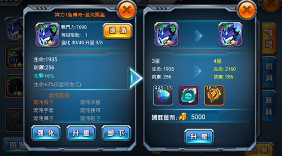 5. 強化與升星會因為裝備的不同而有不一樣的最大限制,若達到該裝備的最大限制,則無法再進行強化與升星。
