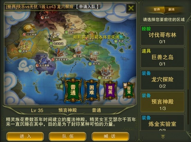 第三個裝備副本“預言神殿”將在等級達到35級時開啟,“預言神殿”與“煉金實驗室”定位相同,同樣是掉落全身裝備,進入和掉落裝備的等級都提升到了35級。副本地圖的設計上有了很大變化,不會再局限於在一個場景中,副本難度的設置上也有了較大提升。