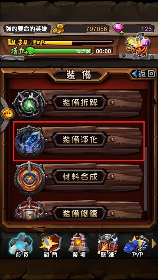 1. 在首頁點擊「裝備」,選擇「裝備淨化」