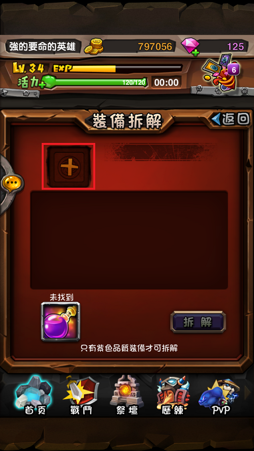 2. 點擊上方的「+」,選擇你想要拆解的紫色裝備