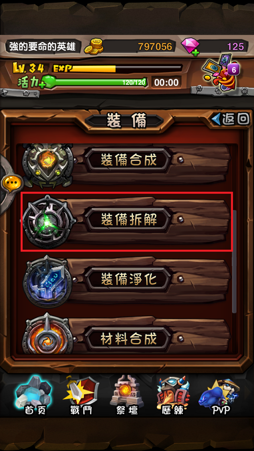 1. 在首頁點擊「裝備」,選擇「裝備拆解」
