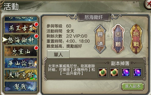 參與方式:全天都可以參加,每天只限參加兩次。難度越高,獎勵越好。