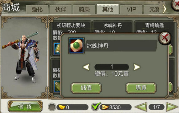 玩家可以在商城中進行購買,價格為每10元寶可以換取1個冰魄神丹。