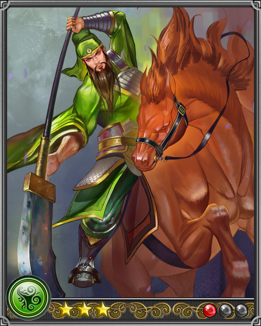 | 三國時代蜀國的武將。擁有超凡的武藝,無論何時都對劉備忠貞不二。他與張飛是劉備幼時的玩伴。劉備、張飛、關羽三人的情誼有如兄弟般親密。當曹操打敗呂布,劉備敗逃時,他與劉備的家族一起被曹操擄獲,但他對劉備的忠誠絲毫沒有動搖。他在曹操之處立下戰功,報答了曹操的恩情以後,再次回到劉備身邊。接著歷史就開始轉動了…。 | |||||