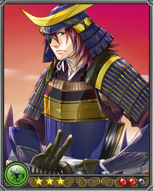 | 稱霸奧州的稀世猛將。雖然因為幼年時期的疾病導致右眼失明,但後來被人尊稱為「獨眼龍」而畏懼著。他在人取橋之戰因太過年輕而犯下錯誤。當時伊達家滅亡的危機迫在眉梢,但是因為忠臣的犧牲而死裡逃生。但是,他在後來的摺上原之戰取得大勝,伊達政宗終能成為奧羽的霸主。可是,完成九州統一霸業的秀吉,終於將矛頭指向關東和東北了。伊達政宗被迫做出賭上存亡的選擇。 | |||||