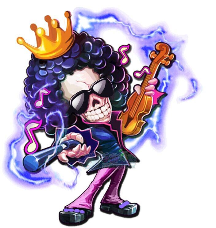 | 號稱“鼻歌”,現為草帽海賊團音樂家。因黃泉果實的能力,靈魂走出黃泉並準備回身體時,找到的身體已變成骷髏,但爆炸頭仍然存在,自此他只能以骷髏狀態生存。從路飛口中得知夥伴拉布現在平安無事的消息,為了履行約定,正式加入草帽海賊團。 |