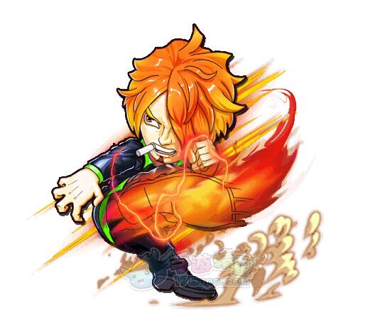 | 草帽海賊團廚師,香煙不離口,最愛女人,很花心但很有風度,海賊中的紳士,從不願意傷害任何的女性,哪怕是敵人。首次懸賞就有7700萬之高。夢想是找到傳說之海跟隨路飛一同進入了偉大航路。 |
