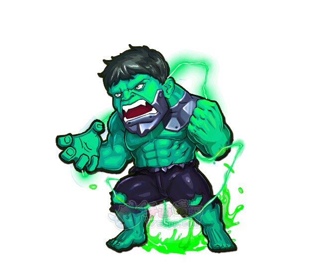 | 受到伽馬射線開始異變,在憤怒之時就會變成狂暴的綠色彪形大漢,變成後的浩克防禦力極高,力量足以掀翻坦克,脾氣暴躁的浩克,據說力量甚至比超人還要強大! |
