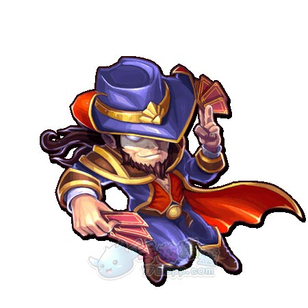 | 被稱為“扭曲的命運”。在卡牌方面,無論他拿到什麼手牌都能獲勝。不過讓他名聲在外的可不是用卡牌玩遊戲,問問那些膽敢在他的遊戲上作弊的人,他們會告訴你,他只用一副卡牌就能在20步裏殺人。魔法與卡牌的結合是崔斯特的最大特點。 |