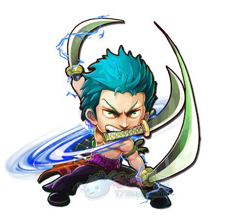 草帽海賊團第二戰鬥力,劍士,綠色頭髮,左耳戴三只黃色露珠耳環,綠色的圍腰 ,腰帶上佩三把刀,左臂綁著深綠色的頭巾。自稱三刀流劍客,時刻都保持著冷靜的頭腦和劍士特有的警覺,意志堅強,刻苦鍛煉,平時喜歡睡覺,路癡。小時候曾向死去的好友古依娜約定要成為世界第一大劍豪,向路飛許下誓言,永遠不再敗。