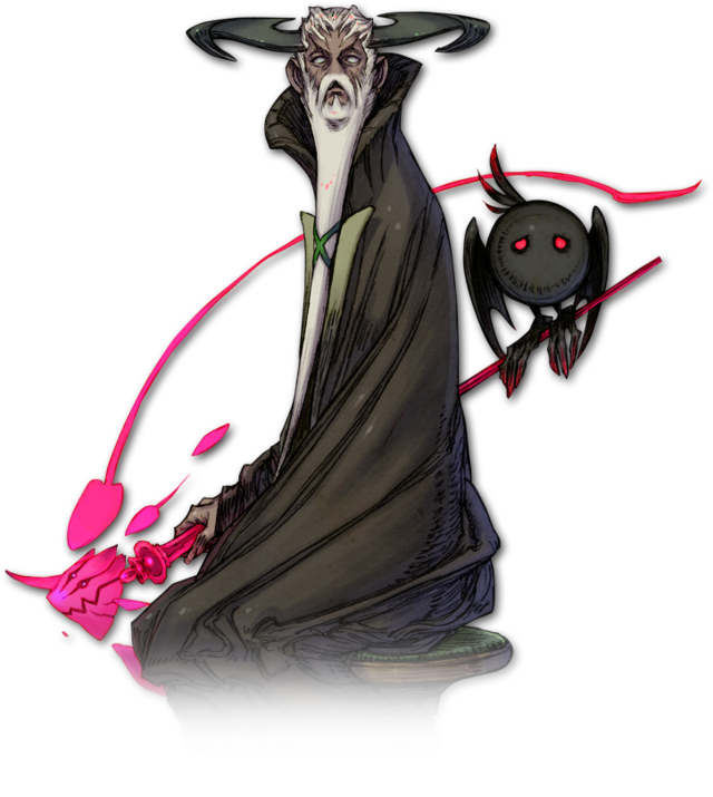 | ミニバクロウを愛玩動物のように召し抱える岩人の魔導師。彼とミニバクロウの絆は炎をより激しく燃やす。余命いくばくもない彼は、終の場所を求めていたが、星の中心を目指すという旅人たちの熱意にほだされ、重い腰をあげた。ミニバクロウは一般的に他種族には懐かないのだが、特殊な遺伝子構造をした生物にのみ心を許し、共生が可能らしい。その理由は現在も研究中である。 |