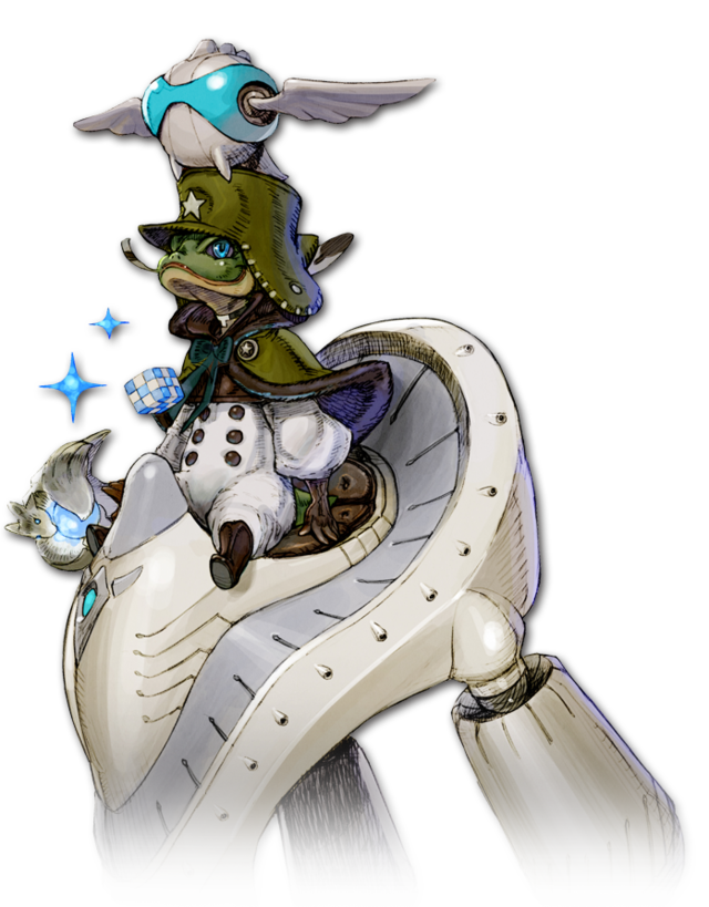 | ミニバクロウを大親友とするトカゲ魔導師。彼とミニバクロウの絆は氷をより無慈悲な力に変える。幼い頃、水に落ちて溺れそうになったところをミニバクロウが救ってくれたことがキッカケで、共生が始まった。ミニバクロウは一般的に他種族には懐かないのだが、特殊な遺伝子構造をした生物にのみ心を許し、共生が可能らしい。その理由は現在も研究中である。 |