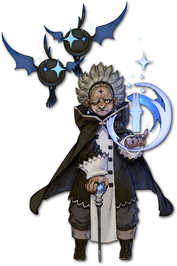 | 一度退役した、かつての英雄。彼とミニバクロウの絆は気圧を操り稲妻を呼び寄せる。その昔、バクロウを使役できる特殊なヒトを集めた特殊部隊があったという。彼らの多くは短命で、そのほとんどがすでに星となっている。彼はその生き残りである。かつての威光は鳴りを潜め扱える魔法の数はごく一部となってしまった。 |