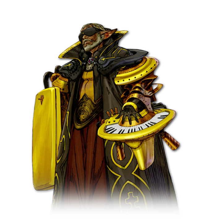 | サングラスと長いヒゲが特徴的なケモノ。世界的にあまり例がない、空間操作術を研究している。それは一定範囲内の物理法則への干渉を試みるというロストスペルだ。研究が戦闘下で行われている為か、現在は物理攻撃や魔法攻撃のエネルギーを増減させるという効果のみが確認されている。その術の発動方法はとても特殊で、ピアノの鍵盤を弾き、奏でられた旋律に含まれる特殊な周波数が空間に対し干渉するという。 |