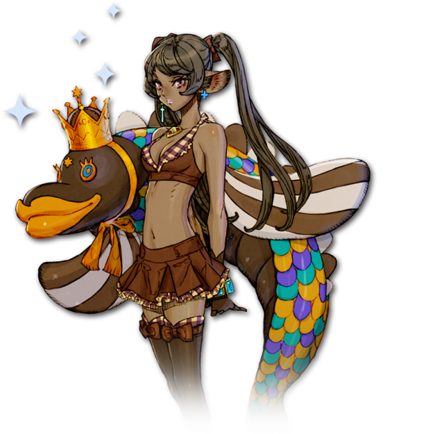 | 奇抜な衣装に身を包む、ケモノの少女。地上のショービジネス界で、いわゆるアイドルとして活動している。踊りが大好きでいつも何らかのステップを踏んでいるが、今のところそこまで上手ではないので妙にしっくりこない。そんな欠点がありながらも、自分がアイドルであることを鼻にかけ、ややツンとした態度をとっている。そんなギャップが人気に拍車をかけているようだ。 |