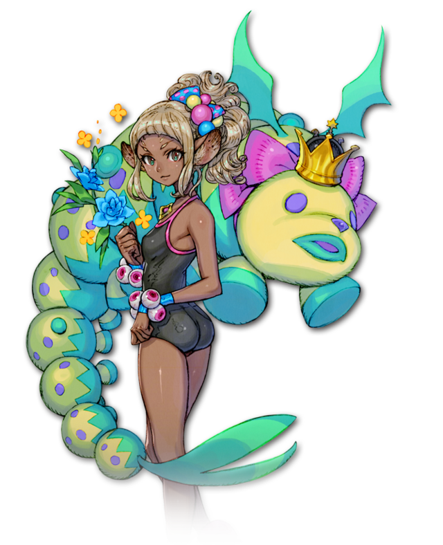 | 奇抜な衣装に身を包む、ケモノの少女。地上のショービジネス界で、いわゆるアイドルとして活動している。花が大好きで、いつも土ごと服のポケットに入れて育てている。彼女はどうやらケモノとしては希少種なようで、「緑の手」と呼ばれる特殊な力を持っている。「緑の手」は命と力を育む力であり、だからこそ彼女が愛し、常に携帯している植物は大地を離れてなお育っているらしい。 |