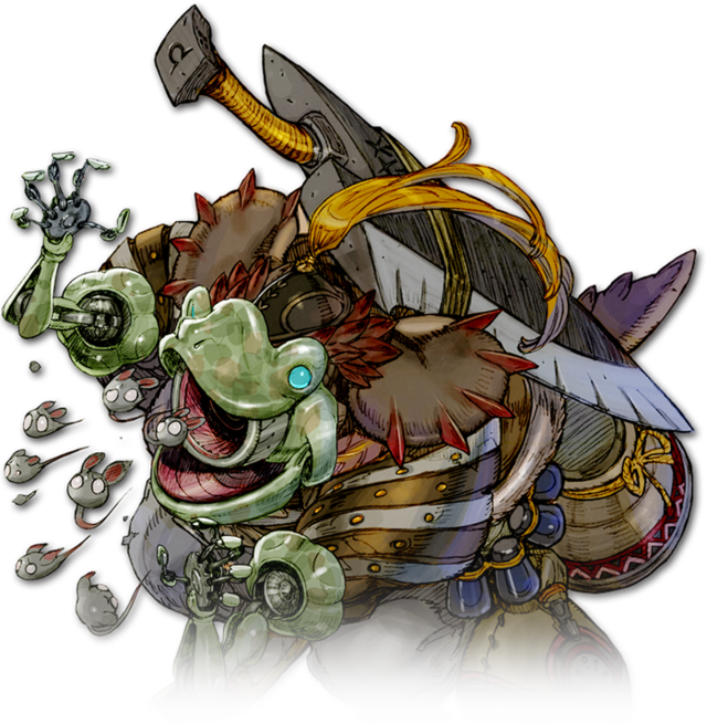 その二つ名の通り、大きな口が特徴的なトカゲ。そのせいか声が大きく鬱陶しい。また毎晩毎晩酒をがぶのみして恐ろしい額の食費が飛んで行く為、エンゲル係数エスカレータの異名をとる。歯を磨かないので口臭もひどい。だが良いところがひとつも無いかといえばそうでもない。その、あの…あれなんだけど、思い出せないのでいずれ誰かがきっと証言してくれると思う。