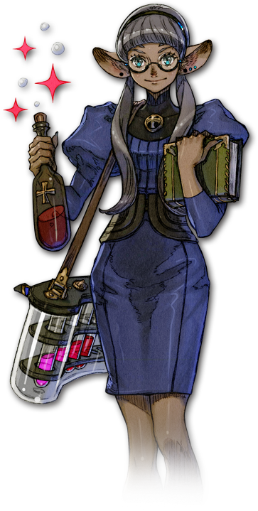 ケモノの薬に通じた研究者。ケモノにしては珍しくメガネを所有。温厚でのんびりな性格が相まって最前線の戦いにはあまり向いていないようだ。空いた時間で教師も代行している。その勤勉ぶりと生来のウブさが災いしたのか男女の関係には疎く、知識だけが蓄積されていっているらしい。
