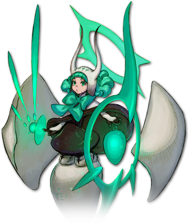 | 岩人たちの次代を担うとされる子供のひとり。岩人の中でもかなり稀少な武家の生まれで、将来を渇望される令嬢。そのため徹底的な英才教育を施された。自分の腕につく岩にいくつもの弦を張り、マルチプルアローとして活用している。今のところ、ハープとして用いれば音楽に、矢を番えれば弓に、という使用目的があるようだ。 |