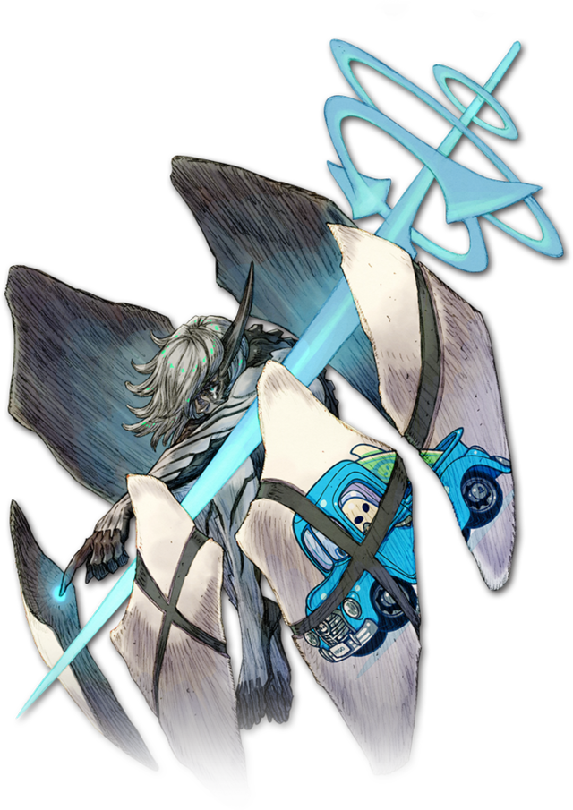 | 常にうずくまったような姿勢で過ごす岩人。それはエネルギーの消耗を最小限に抑える為の策だったのだが、いつしか非常に内向的で陰鬱な性格と変わっていた。反面、創造性においては非凡なセンスを見せている。彼が纏う、岩で出来た盾に描かれた紋様は彼の手によるもので、そこでも彼の芸術的素養の高さが発揮されている。 |