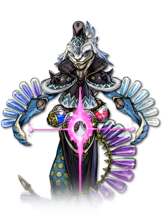 | 神経質な細身のトカゲ。特殊な毛穴を持つ部族出身で、発情期になると毛穴から生魚のハラワタとまで言われる芳香を漂わせる。その臭い成分を抽出した香水が売られているというから驚きだ。そんなものをだれが買うのかはまったくの不明だが、毎月一定額のライセンス料が支払われている。需要はあるらしい。余談だが、彼には軍師としての才能がある。優れた動体視力と広い視野で戦場を見渡せるのだ。 |