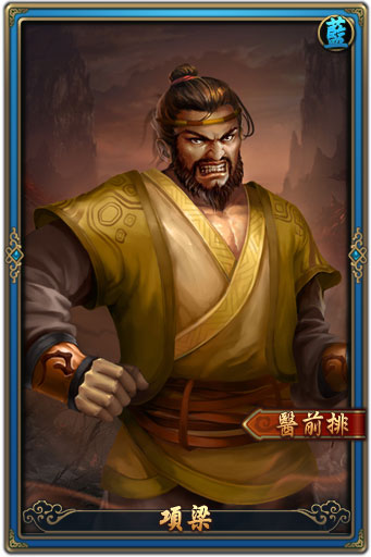 | 角色描述 | 楚國項氏一族,少羽叔父,其人生性豪放,驍勇善戰。楚滅後他憑借昔日在吳中的威望,廣納賢士、闇中招兵買馬、訓練子弟,為日後項家舉事、成就霸業奠定了至關重要的基礎。 |