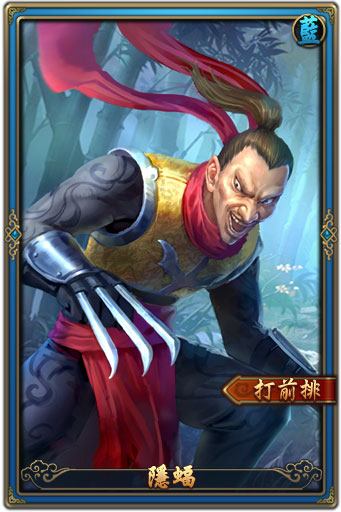 | 角色描述 | 衛莊手下,逆流沙刺客團成員。真實年齡不明,原是蠻疆土人,後被父母拋棄山林,流離於亂世,十年來一直隱居南疆修習蝠血術,每天與南疆矛頭血蝠生活在地穴之中,如今已是個半人半蝠的怪物。 |