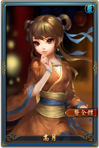 | 角色描述 | 姓姬,名如,字千瀧,封號“高月公主”。燕丹之女。天真可愛,溫柔婉約和普通人一樣過著平常生活,但言談舉止間卻有一股與生俱來的高貴氣質,精通藥理,是端木蓉的得力幫手,在陰陽巫術方麵也有著非比尋常的天賦。原為墨家弟子,後被月神帶入陰陽家 |