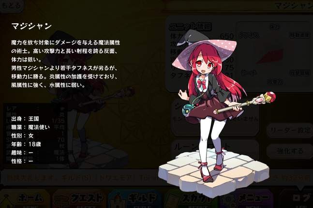 | 名稱 | マジシャン(炎・女) | 出身 | 王国 | ||