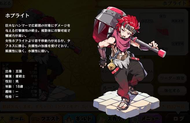 | 名稱 | ホプライト(炎・男) | 出身 | 王国 | ||