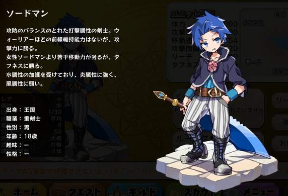 | 名稱 | ソードマン(水・男) | 出身 | 王国 | ||