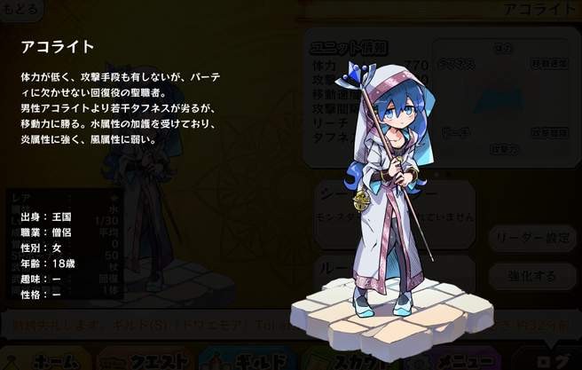 | 名稱 | アコライト(水・女) | 出身 | 王国 | ||