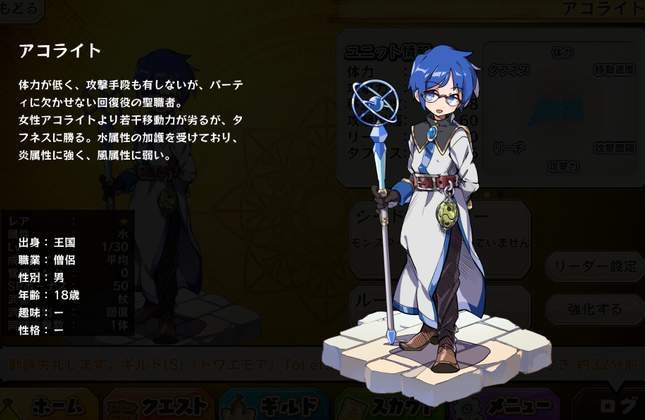 | 名稱 | アコライト(水・男) | 出身 | 王国 | ||