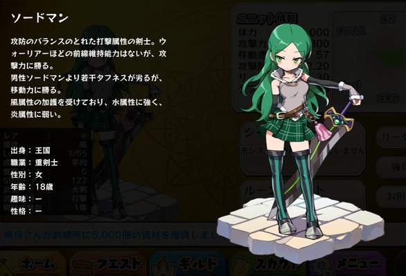| 名稱 | ソードマン(風・女) | 出身 | 王国 | ||