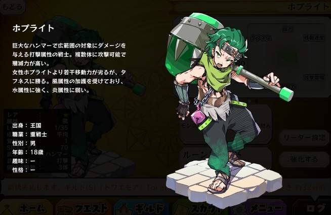 | 名稱 | ホプライト(風・男) | 出身 | 王国 | ||