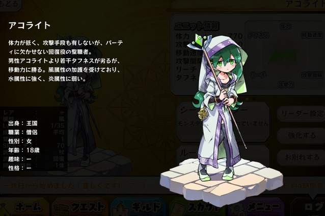 | 名稱 | アコライト(風・女) | 出身 | 王国 | ||